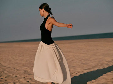 The Camila Dress in Noir and Brule offers a sophisticated update to the Soglio dress....