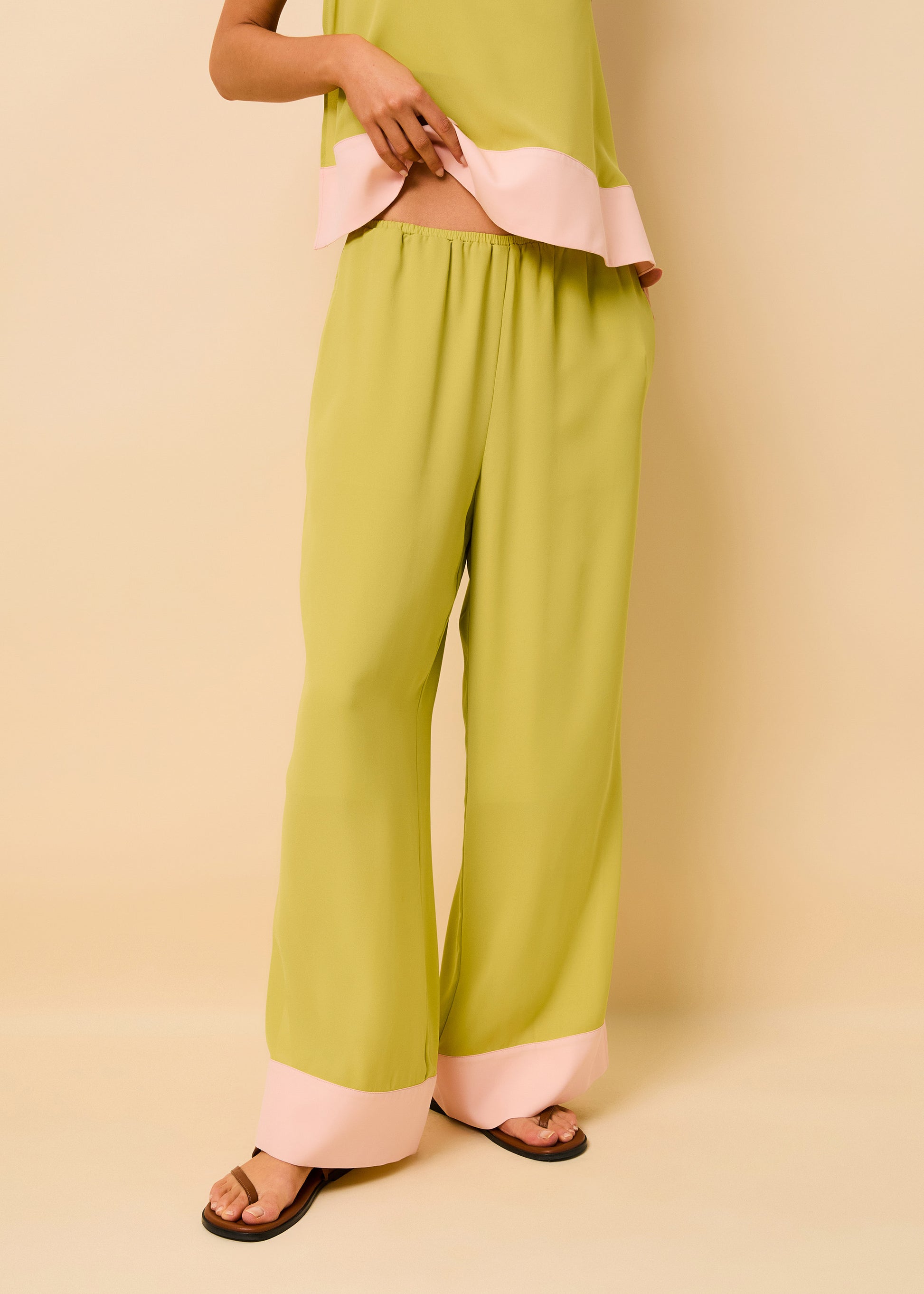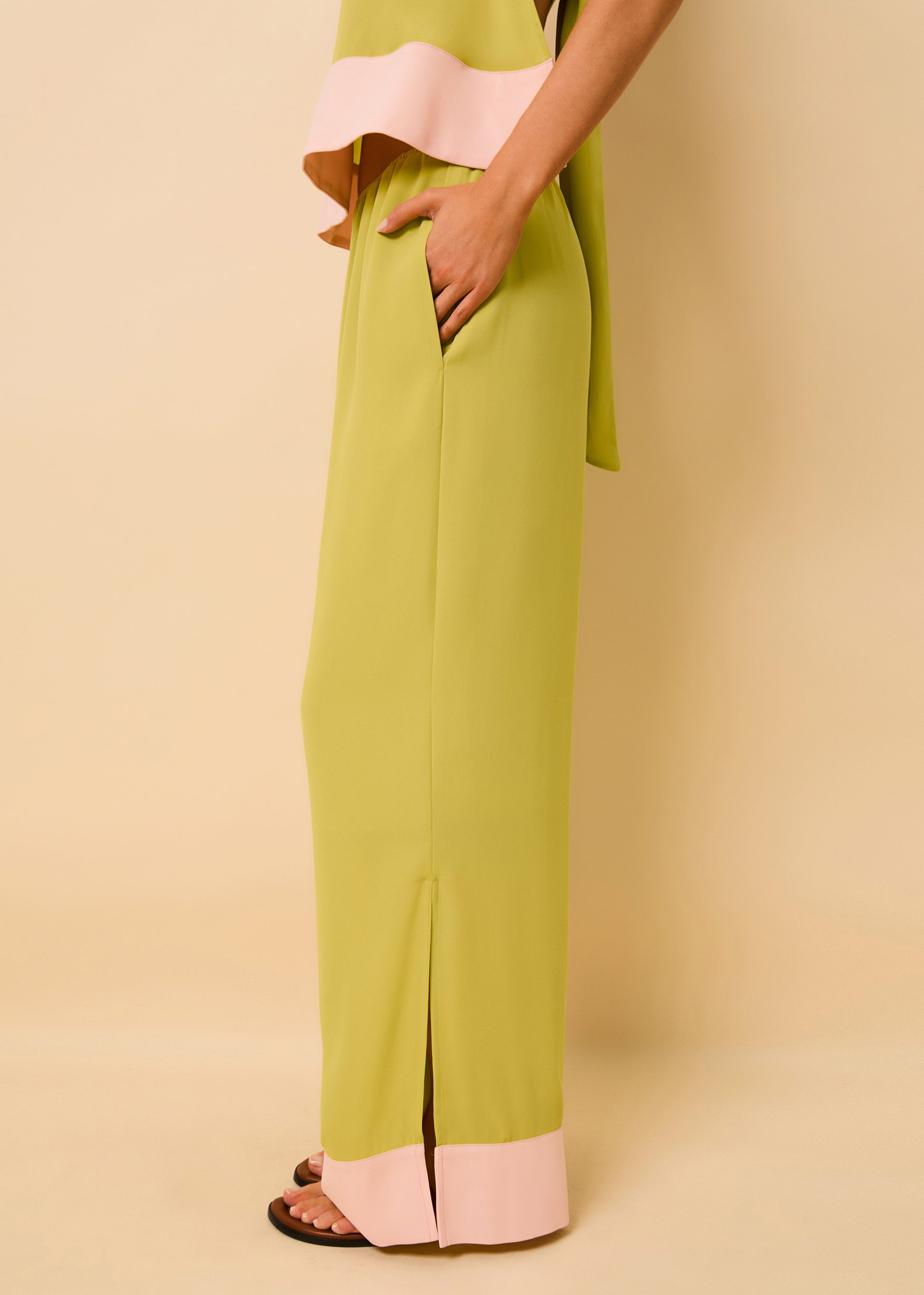 - Features: Colorblock hem, side ankle slits, and pull-on construction.