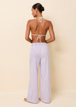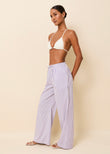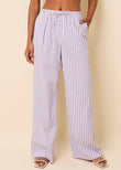 The Ashling Pant Ultra Violet Stripe is crafted from lightweight poplin fabric for breathable comfort and effortless style. Featuring a striped design, a mid-high rise with a narrow waistband, and a drawstring tie for a customizable fit. This straight-to-wide leg pant includes front pockets for practicality, making it a versatile piece to pair with the matching Avril Button Down for a coordinated look.