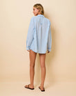 The Avril Button Down is a classic button-down shirt, featuring a relaxed fit, a single chest pocket, and mother-of-pearl buttons. Made in a crisp cotton poplin, the shirt features a yarn dye stripe and is finished with a washed effect for effortless, lived-in charm. This season the Avril Button Down features tonal rope trim at the cuffs and back hang loop along with playful directional stripes at the pocket for a fresh take on a classic pattern—delivering the perfect blend of heritage style and casual sophistication. Pair with the matching Lester Short in Blue Lagoon / Brule Stripe.
