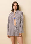 This classic button-down shirt is a timeless summer essential. Featuring a relaxed fit, a single chest pocket, and elegant mother-of-pearl buttons, it’s finished with a washed effect for effortless, lived-in charm. The design showcases playful stripe size variation for a fresh take on a classic pattern—delivering the perfect blend of heritage style and casual sophistication. Pair with the matching Marnie Pant or Lester Short.