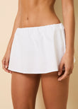 The Brinley Mini Skirt in Optic White features a pull-on design with an elasticated, gathered waist for volume and ease. With a built-in fitted jersey short, it offers comfort and coverage in a breezy mini length. Perfectly paired with the Livia Tunic for a crisp, polished outfit.