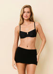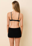 The Celeste Skirt in Noir offers a sleek, modern update to the classic short silhouette. This micro-mini skirt includes built-in engineered knit shorts made from a soft cotton-knit blend with reverse jersey fabric for added comfort. Finished with a scalloped hem and waistband, it combines style and function in a versatile piece.