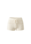 The Charlie Knit Short Cotton Patchwork Brule is a soft, medium length, pull-on knit short in a relaxed boxer-style silhouette. Designed with a high-rise elastic waistband, drawstring and pockets, these shorts are lightweight and endlessly versatile. Style with the matching Rowan Sweater for a cozy look perfect for lounging or over your favorite swim.