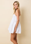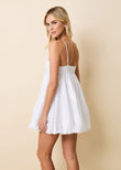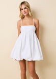 The Charlotte Dress in sateen poplin features a fitted bust, adjustable straps, and a voluminous bubble skirt. Designed with an empire waist, gathered detailing, and a side zip for a flattering fit, this dress is fully lined for effortless elegance.