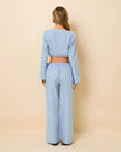 The design is defined by its adjustable rope tie front, allowing you to cinch the waist as desired for a custom fit. Finished with silver-toned cord ends and nautical-inspired rope detailing, the Chelly Top delivers a refined, coastal aesthetic with a modern edge. Pair with the matching wide-leg trousers for a coordinated look.