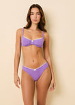 The Daphne Ribbed Bikini Top in Ultra Violet is the perfect 90s-inspired bikini top. This ric rak trimmed swimsuit with underwire cups and adjustable straps offers support without compromising style. Crafted from recycled materials and designed to provide UPF 50+ protection. Pair it with the Daphne Bikini Bottom to complete your look.