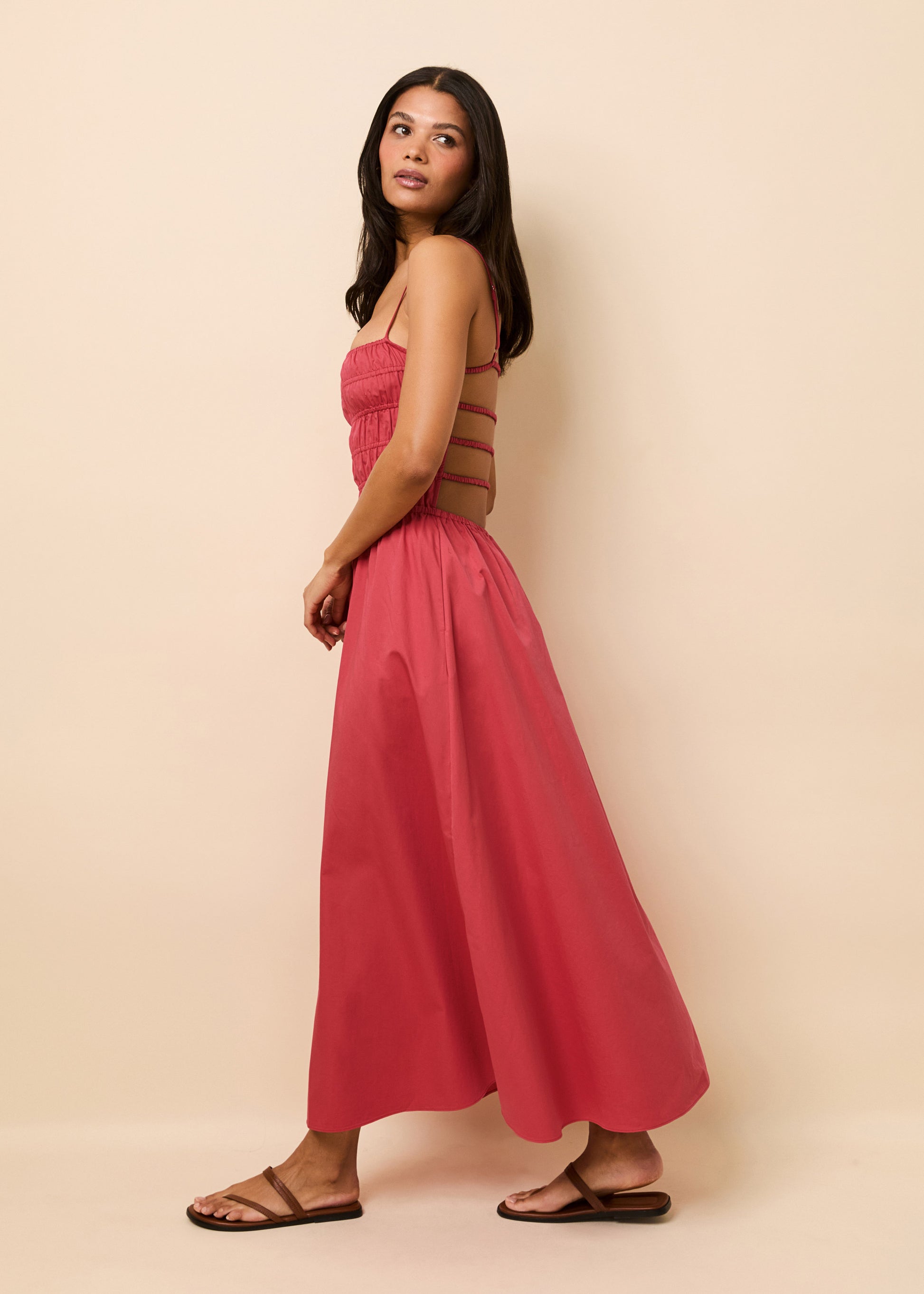 Delta Midi Dress Poplin Rooftop Red