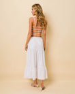 The Delta Top returns in a classic stretch cotton poplin. Designed for the perfect fit, the top features a beautifully smocked front, open back with elastic-encased horizontal straps for added comfort, adjustable straps at the shoulders and a delicate ruffle hem. Cropped at the waist, it’s a breezy, feminine staple for effortless styling. Pair with the matching Indra Skirt for a chic monochromatic look.