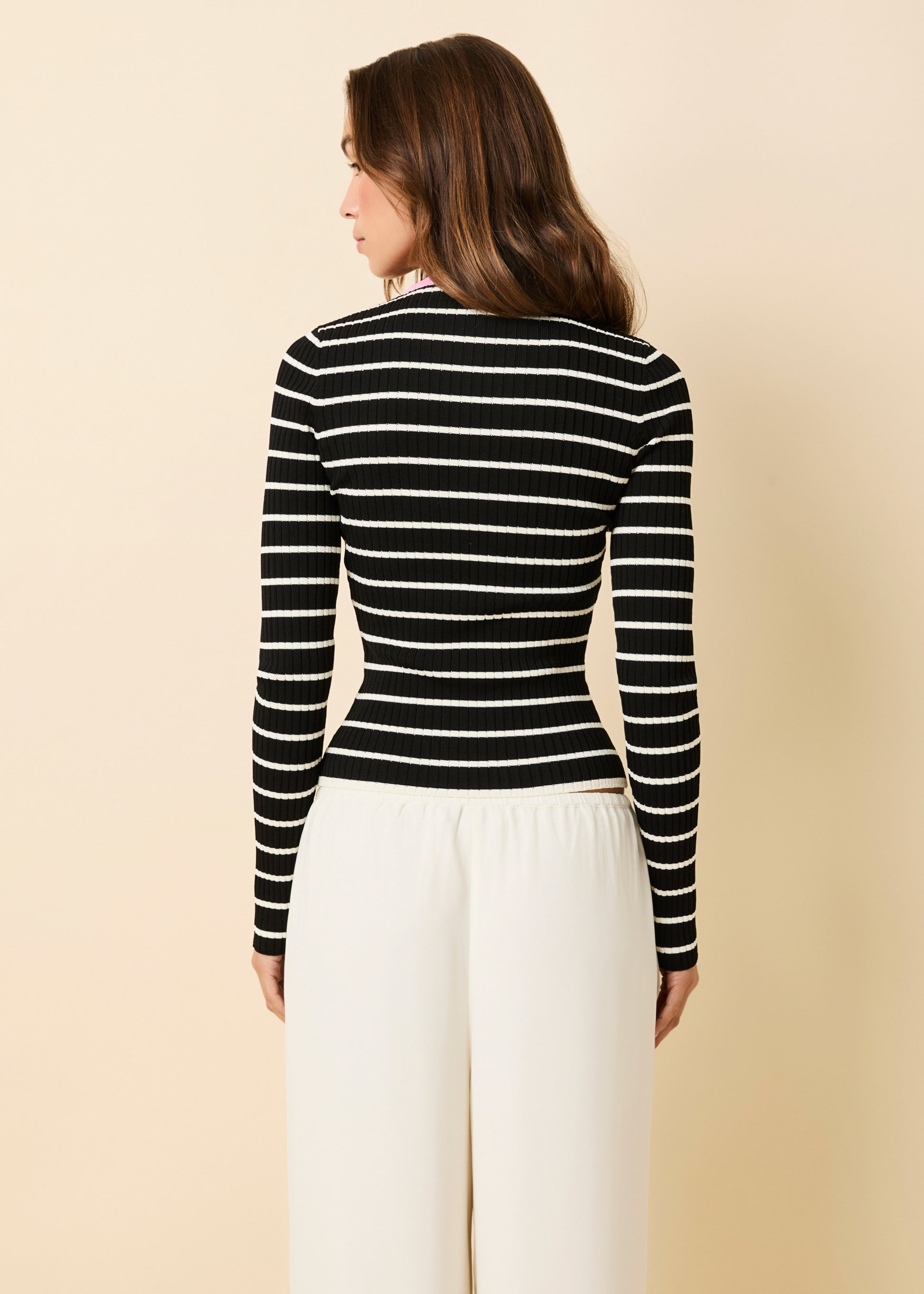 Dora Ribbed Knit Top Noir / Brule Stripe / Bon Bon