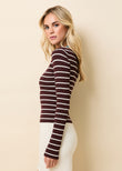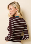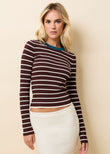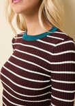 The Dora Ribbed Knit Top features a sleek, fitted silhouette in a structured ribbed knit. Designed with long sleeves and a contrast nocturnal blue crew neckline, it’s finished in our classic stripes. Pair with the Monaco Pant for an effortless look.
