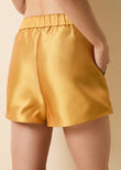 A high-rise, peplum-inspired silhouette crafted from a structured woven fabric with a soft sheen. Designed with a clean front waistband, elastic at the back, and gathered volume for a playful shape. Finished with side pockets, an invisible side zipper, and a rolled hem. Unlined for a lightweight feel. Pair with the matching Yarden Top.