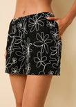 Ezra Short Embroidered Schfly Floral Doodle Noir