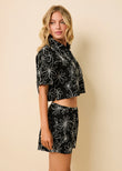 Ezra Top Embroidered Schfly Floral Doodle Noir