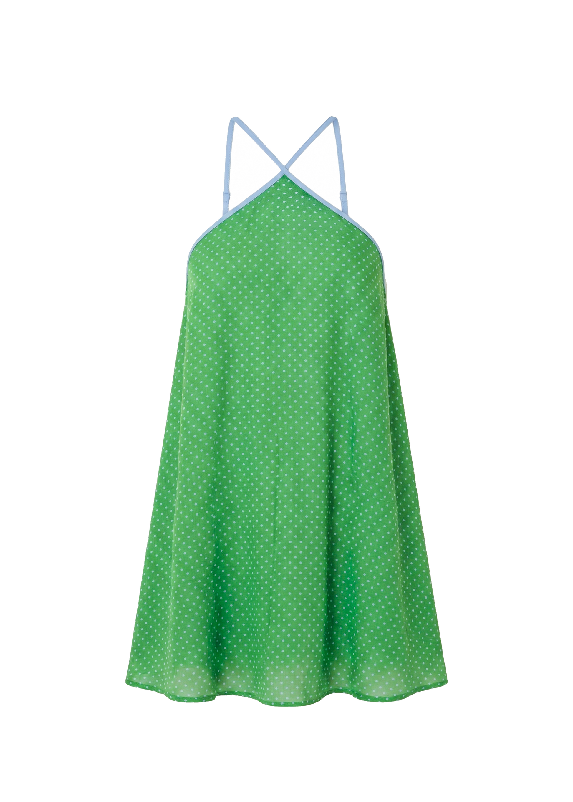Grace Mini Dress Luxe Drape Turtle Green / Blue Lagoon Mini Dot
