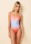 The Hailey One Piece is a timeless swim essential, now updated with a printed ombré in soft terry fabrication. Designed with a classic scoop neckline, low back, and high-cut legs, this silhouette creates a flattering, elongated look. A built-in shelf bra offers subtle support, while the cheeky fit adds a modern touch.