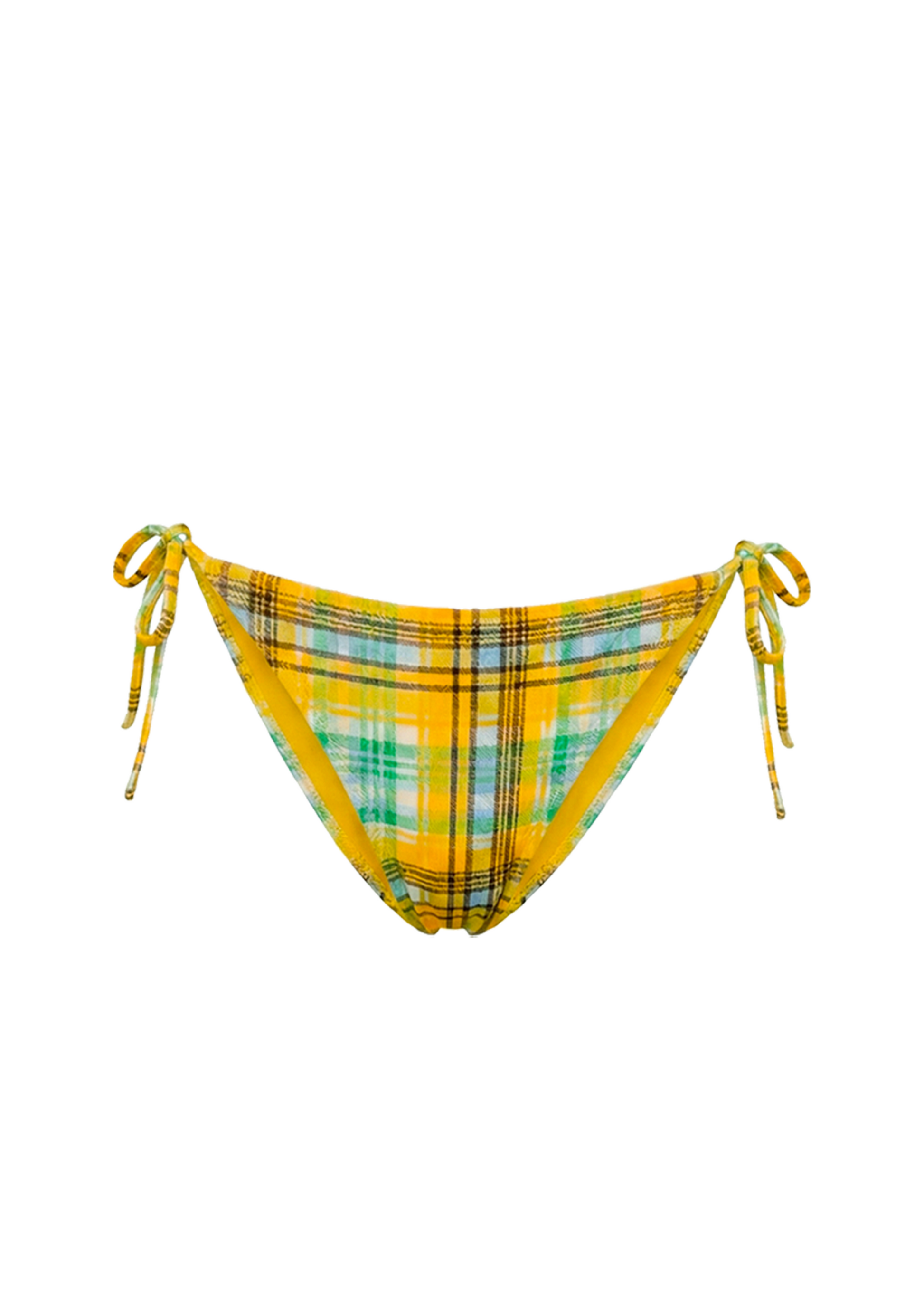 A true classic, the Iris Bikini Bottom in Pineapple Plaid in a seersucker fabrication is the perfect string bikini for any destination. This minimal silhouette offers a low-rise fit, moderate coverage, and adjustable sides. Style with the matching Iris Bikini Top.
