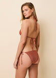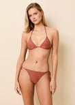Our classic halter triangle bikini top, now updated in a shimmering Lurex fabric, is perfect for minimal tan lines. This chic silhouette ties at the neck and back with movement at the cups for your best fit. Pair with the matching Iris Bikini Bottom.