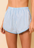 The Lester Short in a crisp poplin with a yarn dye stripe features a comfortable pull-on design with an elasticated waist for an easy fit. A curved leg opening adds a flattering touch and a tonal rope trim along the hem elevates the look with a sporty, nautical detail. Perfect for pairing with the matching Avril Button Down or any of our swim.