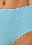 The Lilo Bikini Bottom in cloud terry fabric is the perfect retro-inspired swimsuit. This high-waisted silhouette offers moderate coverage. Pair with the matching Lilo Bikini Top.