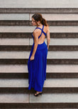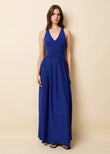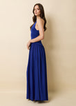 The Maggie Dress is a striking maxi silhouette featuring a deep V neckline and a curved waist seam for a flattering fit. Cross-back straps lead to a low scoop, sexy but sporty back. Effortless and elevated, it's a versatile style made to move with you.