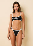 Introducing the new Milani Bikini Top—a fresh take on sporty with a retro, clean vibe. This pull-over style features a low-cut front with contrast binding for a bold, graphic edge. Adjustable straps ensure a perfect fit and peak comfort. Pair with the matching Milani Bikini Bottom in Noir for a fun and coordinated look.