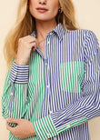 The Oxford Tunic is crafted from crisp poplin yarn-dye fabric for a polished yet effortless feel. Designed with bold colorblock stripes and a classic patch pocket, it offers a modern twist on a timeless silhouette. Perfectly versatile, it pairs effortlessly with the Celeste Short or layered over your favorite swim.