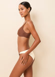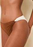 The Perrie Bikini Bottom—a fresh take on our signature Tati style. This mid-rise silhouette features a high leg opening for a flattering, elongating fit and is updated in a bold color-blocked design. Sleek and modern, the Perrie offers the perfect balance of coverage and edge.