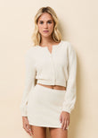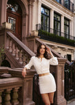 The Ronnie Mini Skirt is a sleek, bodycon silhouette designed for easy wear. This pull-on style features a smooth, form-fitting shape and is finished with a thin tubular waistband and hem for a clean, minimalist look. Pair with the matching Lynette Cardigan.