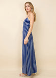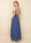 Sleek and lightweight, the Rosetta Dress is an effortless maxi silhouette featuring adjustable straps and a low back for an elegant, breezy fit. Now available in a Navy Nautical Stripe, it's perfect for seaside escapes or summer nights out.