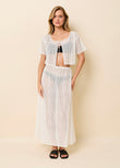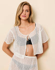 The Shannon Tie Top in Optic White offers a chic take on the traditional cabana shirt with a relaxed, modern silhouette. Featuring dropped shoulders and a wide neck with an open front, it’s finished with a tie-neck closure for a versatile, effortless look. Crafted with delicate baby eyelet fabric and clean binding at all hems, this cropped, wide-fit top boasts relaxed sleeves and impeccable attention to detail for a polished yet breezy vibe. Pair it with the matching Sydney Skirt for a coordinated and stylish outfit.
