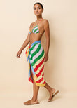 The Colorblock Beach Stripe Pareo is a stylish and versatile cover-up, featuring bold colorblocking and a striped design. Perfect for adding a chic touch to your beach look, it can be worn in multiple ways for a relaxed, elegant vibe.