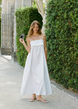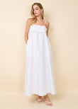 Effortlessly elegant, the Sophie Dress is crafted from luxurious sateen poplin, offering a soft yet structured feel. Designed with a romantic ruffled neckline and adjustable straps, it provides a customizable fit. The encased elastic ensures comfort, while the maxi trapeze skirt creates a flowing, airy silhouette. Complete with pockets for added functionality, this dress is perfect for any occasion.