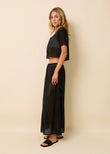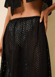 The Sydney Skirt in Noir is a flowy maxi skirt crafted from delicate baby eyelet fabric for a light, breezy feel. Designed with a pull-on style and an elasticated waistband for easy comfort, the skirt features an unbound hem with a subtle pin back detail, allowing for effortless movement and no restriction. Perfectly paired with the Shannon Top for a coordinated look.