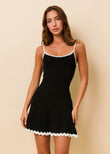 The Talia Mini Dress is defined by its graphic contrast and textural finish. Crafted from a wavy rib knit, this mini dress features a body-skimming silhouette that transitions into a subtle, loose skirt for effortless movement.