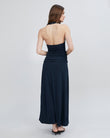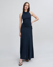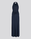 The Bobby Dress, perfect for your summer events, is a maxi length dress with a cowled, halter neckline. The ruched layers add detail at the waist, and its completed with an open back.