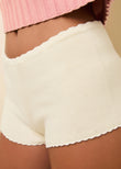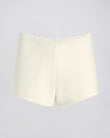 The Celeste Short is made in a reverse jersey, cotton knit. This hot pant style short has an elastic waist band that sits on the hips and scalloped edging. Pair with the Eva Jacquard Bikini Top or one of our cashmere sweaters.