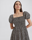 The Corrina Dress features a soft and crisp cotton voile fabric in our Ditsy Floral This versatile dress is complete with pockets, a smocked bodice, and a relaxed fit.