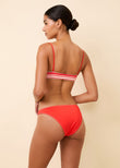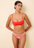 The Daniela Reversible Bikini Top can be worn solid or striped. This minimal coverage bandeau top is made with contrast stitching and non-adjustable straps. Mix and match with Tati Reversible Bikini Bottom.