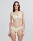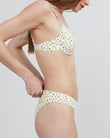 The Daphne Bikini, a fan favorite fit, in a sunflower print. This rick rack detailed bottom is a low-rise cut with cheeky coverage. Pair it with the coordinating Daphne top to complete the look.