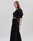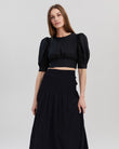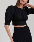 The Gael Top, designed in a lightweight linen fabric, features a cropped fit with a feminine, puffed sleeve and tie at the waist. Pair with the Gael linen skirt.