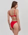 Chic & effortless, the Harley bikini top in ruby red is one of our most coveted styles. This underwire swimsuit has a flattering cutout and adjustable straps. Pair with the coordinating Harley bikini bottom.