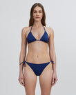 The classic Iris Bikini in a new floral embroidered fabric with rick rack trim. This minimal silhouette offers a low-rise fit, moderate coverage, and adjustable sides. Pair with the matching Iris bikini bottom.