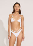 Chic and sexy, this white Iris Bikini Top features a mesh paneling trim along the bust adding dimension to the stark white silhouette. Tie at the neck and back with movement at the cups for your best fit. Pair this string bikini top with the matching bottoms and Avril Pant in Marshmallow Mesh.