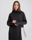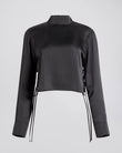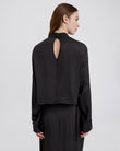 The Leau Top, designed in a silky drape fabric, features a boxy fit, cropped length and a mock neck with button closures and two ties on each side seam. Pair with the Leau Skirt for a coordinated look.