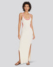 Stand out in our Lola Dress this season. Featured in a buttery ribbed knit with exaggerated cut-outs, this dress falls effortlessly while highlighting all your best assets. The contrasting tipping on the side slit and hip details create dimension.