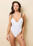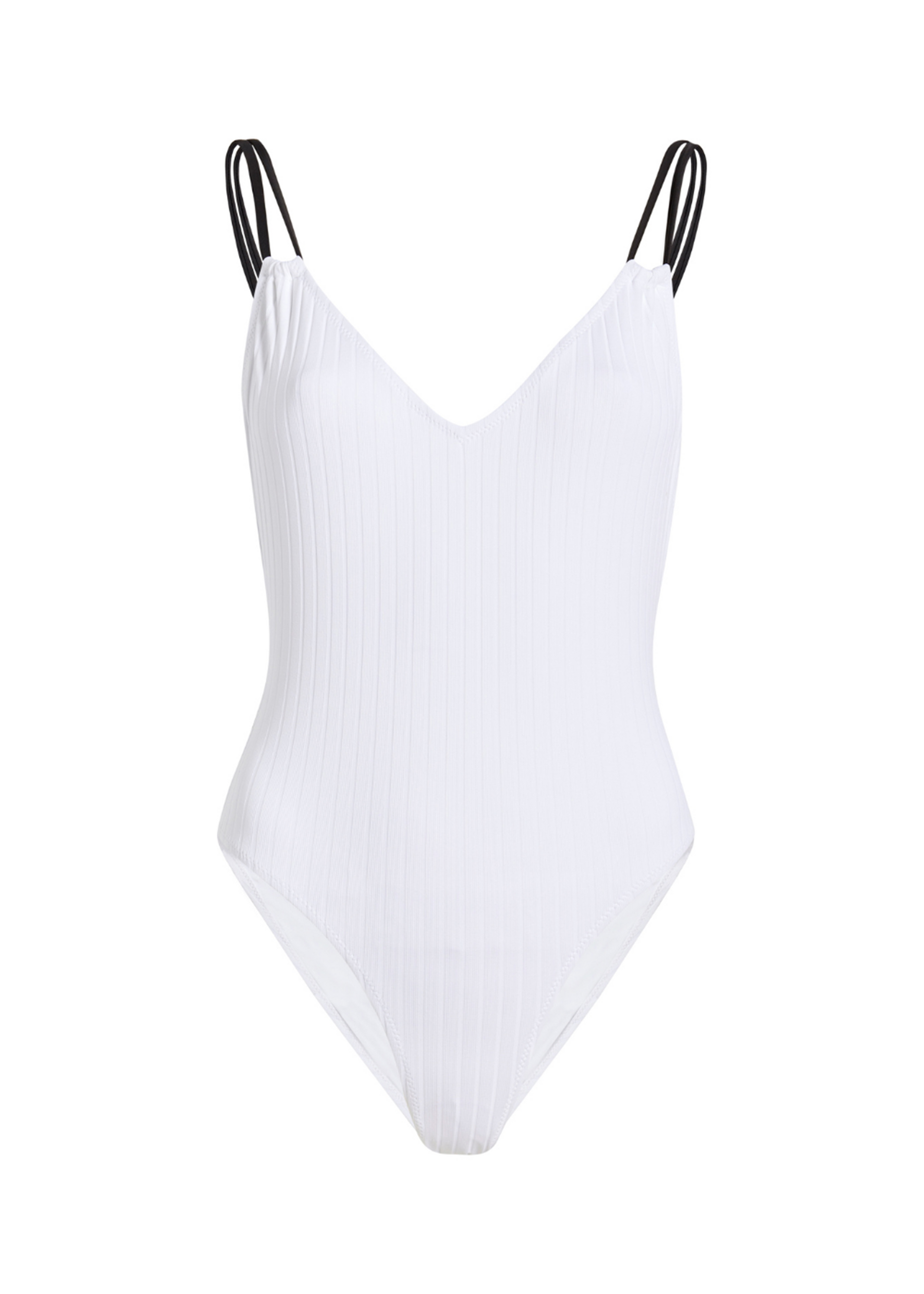 The Lynn Ribbed One Piece will have you feeling your best this season. Featured in our new lightweight ribbed fabrication, this low-cut silhouette offers moderate coverage and fully adjustable shoulder straps. Crafted from recycled materials and designed to provide UPF 50+ protection. Pair it with an Eyelet Oxford Tunic and double as a bodysuit all year long.