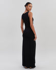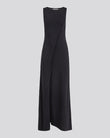 The Mila Dress is designed with a full length skirt and a flattering boat neckline. It has non functional covered buttons running diagonally across the front of the garment.