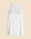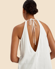 The Milly Top, made in our lightweight crinkle fabric, features a high neck with a deep v in the back and a raw hem. Pair with the coordinating Milly Pant.
