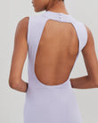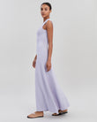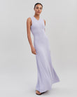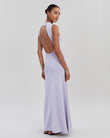 The Nadia Dress, made in our structured viscose knit, features a subtle v-neckline and an open back. Complete with three iridescent buttons at the back of the neck and a flattering A-line maxi skirt.